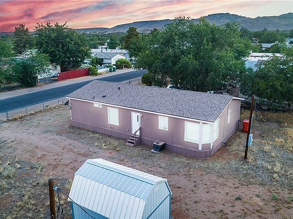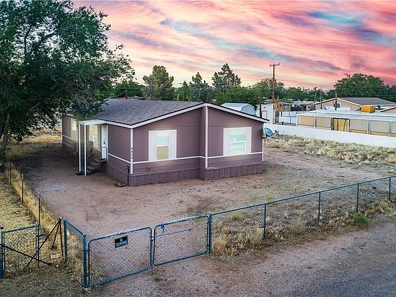 WELCOME HOME!! Gorgeous 3 bedroom, 2 bathroom home with a split bedroom floor plan *Conveniently located on JUST a few miles from to restaurants, shopping, medical and more* and YES YOU OWN THE LAND*NO HOA *BRAND NEW ROOF 2024* This property is large and fenced with quality cyclone fencing* RV gates* Excellent parking for all your recreational toys** Nice views of the mountains** Home features, quality metal skirting, wood and steel construction* Freshly PAINTED TWO TONE EXTERIOR* Interior painted a few years ago* Dual pane windows* vaulted ceilings* Central AC/Heat* Newer wood slate vinyl flooring throughout home(NO CARPET)* Enjoy the spacious living room with ceiling fan and a partially open floor plan*large kitchen with an abundance of cabinets, a bakers bar, 2-pantries, nice countertops, breakfast bar,island,pot-shelves.dual sided stainless steel sink with view window above* Also comes with some appliances(Stainless steel 3 door Refrigerator, electric range/stove, hood vent & dishwasher), * Dining area off the kitchen with more view windows for natural light to enjoy breakfast in the morning* Spacious owners suite with walk-in closet, French doors , allows full access to your owners suite bathroom. Enjoy the full-size vanity with lighting & and enjoy a leisurely soak in your large garden tub/shower combo *Linen closet off the hallway* 2 spacious guest bedrooms and a full size guest bath are located opposite of the owners side for that added peace and quiet** In-door laundry room with washer and dryer*TWO STORAGE BUILDINGS* Low cost utilities* Low annual taxes** Bring the ATV's because the desert trails are very close by*. 45 MINUTES TO LAKE MOHAVE, COLORADO RIVER AND LAUGHLIN NEVADA CASINOS* VERY CONVENIENTLY LOCATE*