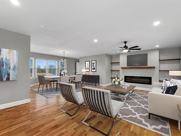 - Dining/Living Room Combo, Bookcases, Open Floorplan, Double Vanity, Shower, Custom Cabinetry, Pantry, Solid Surface Countertop(s)