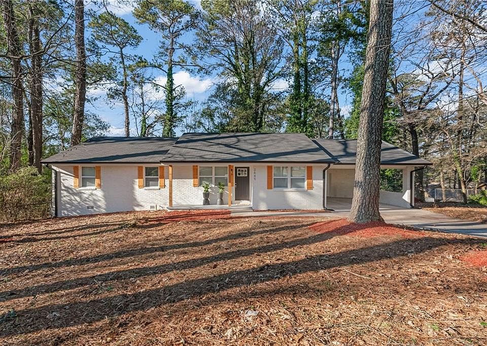 Welcome to this beautifully remodeled 3-bedroom, 2-bathroom ranch in Decatur, where modern upgrades meet timeless charm! The inviting front porch sets the stage for this delightful home, featuring hardwood floors and recessed lighting throughout. Recent upgrades include brand new kitchen and bathrooms, driveway, HVAC, deck, doors, lighting, miniblinds, windows, and fence! Step into the fireside family room, complemented by a separate sitting area, perfect for relaxing or entertaining. The family room seamlessly connects to the open-concept dining area and kitchen, showcasing white cabinets, stone countertops, a breakfast bar, and brand-new stainless steel appliances. The spacious primary bedroom offers a private door to the backyard and an ensuite bathroom with double vanities and a spa-like shower. Two additional secondary bedrooms share a beautifully updated full hall bathroom. Outside, enjoy a large uncovered deck, a lower-level patio, and a fenced backyard with ample green space. The attached 2-car carport adds convenience. Located in a prime area with easy access to Downtown Atlanta, Downtown Decatur, I-285, and Hartsfield-Jackson Atlanta International Airport, this home has it all! Don't miss the chance to make it yours.