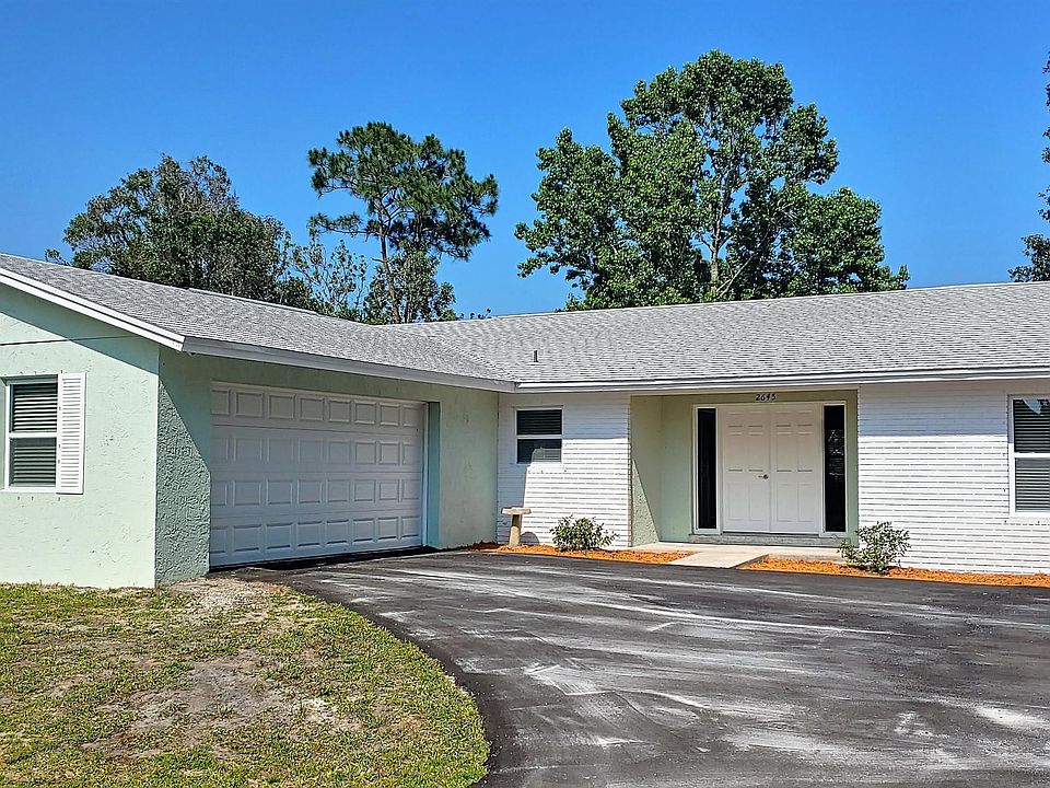 Come check this open floor plan with 3 large bedrooms, separate office/library, 2 full bathrooms, 2 car garage fully renovated home sitting on over an 1.2 acres with a private pond/lake in the rear yard. (Lots of nature and wild life) Updates include a new roof, new exterior paint, new HVAC, whole home re-plumbed, new windows with plywood shutters. New hurricane rated garage door as well as a newer well water equipment. New asphalt driveway too. New interior finishes include new peninsula stylekitchen cabinets and counters, new electric breaker panel, switches, outlets and light fixtures throughout. New drywall finishes on all walls and ceilings. No carpet here, Life Proof vinyl floors throughout the home. Come claim it before its gone!!!!