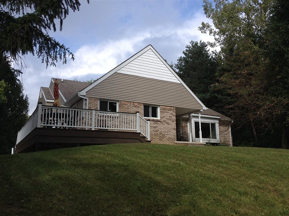 Hurry, own this gorgeous 4 bedroom, 2 1/2 bathroom approx. 2900 sq.ft. living area house nestled on 10 beautiful acres with woods, rolling acres, and 2 peaceful ponds. The updates are numerous! New tile shower. Composite decking, windows, siding, carpet, garage doors, gutters, landscaping, etc., other updates in the last 10 yrs. incl. tile in kit. and dining room, furnace/AC, hot water heater, and new septic field. Enjoy the endless beauty of the acreage from your new composite deck. Enter into your large open kitchen which looks into the warm tiled dining room, or through the large foyer to the huge newly carpeted living room with 20 ft. cathedral ceilings with tall brick fireplace. New carpet in bedrooms too! Master Bed. has a large walk in closet with a lav. For fun and relaxation enjoy the warm carpeted family room with cozy fireplace and pool table. Once again go out the family room door to the beautiful acreage, and large storage barn. Appraisal much higher than List Pr.