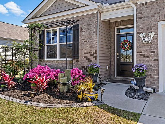 Discover your dream home in this inviting open floor plan nestled within a coveted natural gas community, Meridian in Market Common! Just moments from premier shopping, dining, and the serene beaches! This residence showcases a seamless open concept design with four bedrooms all conveniently located on a single level. Step onto your individually heated and cooled covered porch, offering tranquil views from your premium lot. Inside, revel in the charm of white painted cabinetry, quartz kitchen upgrades, and stainless Whirlpool appliances, including a gas range. Entertain effortlessly with a spacious pantry, a large island with room for seating, and laminate wood flooring throughout the ENTIRE home(builder upgrade). Enhanced with thoughtful electrical upgrades, including solar roofing with battery backup, whole house surge protection, 220 outlet in the garage and customizable Govee lights, this home boasts convenience at every corner. Enjoy outdoor living with a stone paver patio, custom landscape curbing, and a meticulously maintained yard. Additionally: custom wood pantry shelving, glass tile backsplash, epoxy garage flooring, additional heavy duty garage storage shelving, attic fully floored for additional storage and MORE! Included with the home are four HD TVs, master bedroom furniture, living room furnishings, dining room stools/furnishings, like-new washer/dryer and a stunning top of the line Samsung refrigerator, along with many more luxurious touches. This turnkey property is ready for you to move in and make it your own. Don't miss the opportunity to call this meticulously upgraded residence your own—schedule your showing today!