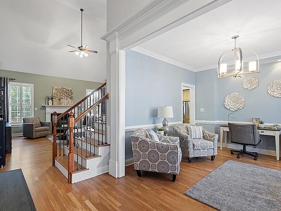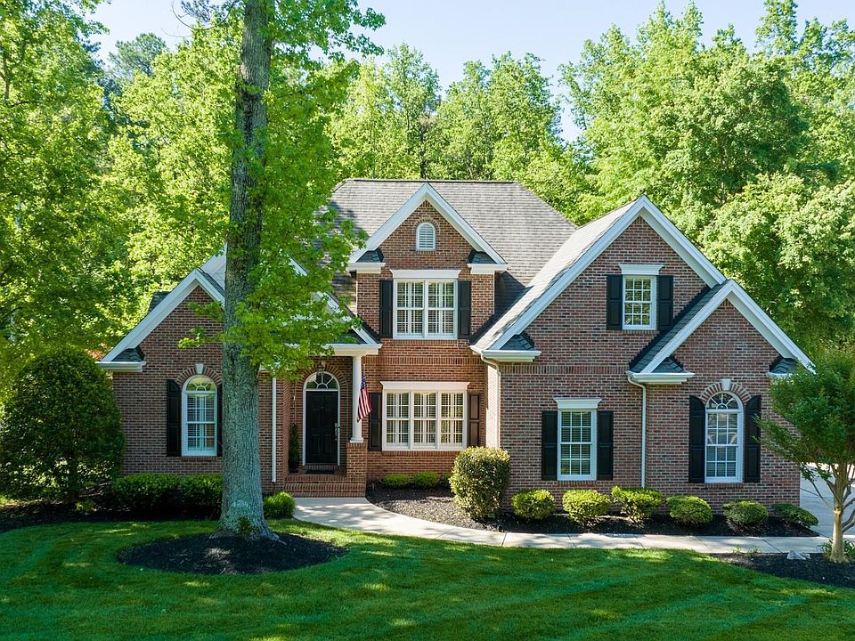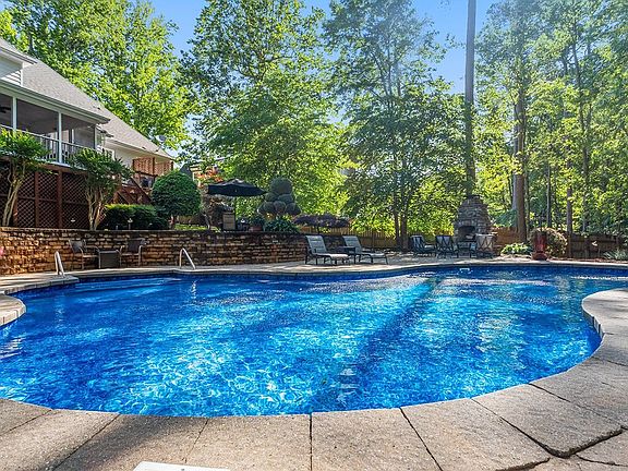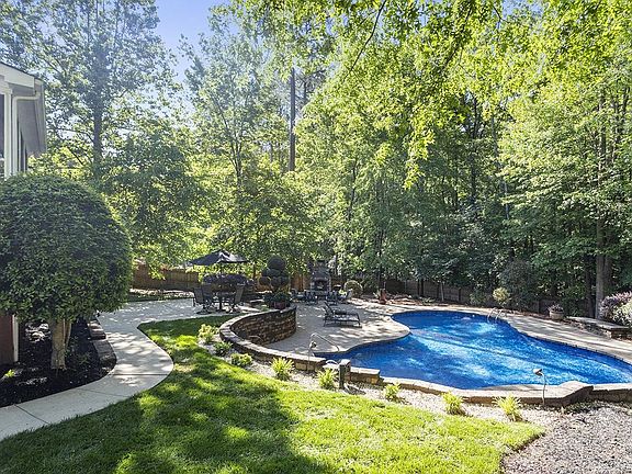 Welcome to this stunning 4 bedroom, 3 bathroom home featuring a screened in porch that overlooks the backyard oasis, complete w/ an in-ground pool & a beautiful stone fireplace! New pool lining and outdoor lighting in 2022. This provides the perfect ambiance for entertaining guests or enjoying quiet evenings outdoors. The brand new landscaping is simply gorgeous, creating a serene atmosphere that you'll love coming home to. As you step inside, you'll be greeted by high ceilings & abundance of natural light that fills the open concept living spaces. Newly refinished hardwood floors throughout. Easy living with the main floor owner's suite, complete w/ an en-suite bathroom that features a walk-in closet, dual vanity sinks, & a soaking tub. The large open concept kitchen is a chef's dream w/ tons of cabinet space & stainless steel appliances. The home also features a huge bonus room w/ built-in shelves for storage, providing plenty of space for your hobbies & interests. Plenty of storage on both the second level and floored attic. Located less than 10 minutes to Downtown Wake Forest restaurants, parks, and more!