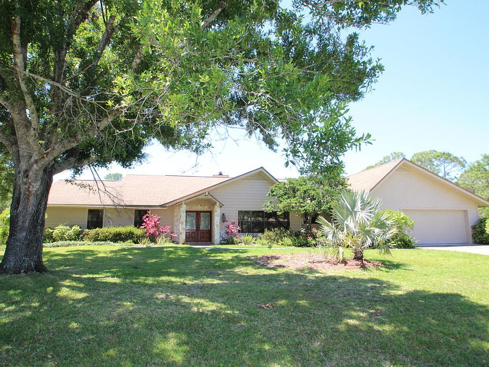 Beautiful 4 bedroom home on over an acre! Huge gourmet island kitchen w/solid wood cabinets, stainless appliances, tiled backsplash, & granite countertops. Open great room floor plan w/cherry wood floors & tongue & groove vault ceilings. Rock wood burning fireplace with 2 sets of french doors. Huge trussed screened porch with peaceful & private views. Nice master w/jacuzzi tub & separate shower. Split bedrooms floor plan. New AC in 2016. Hurricane shutters. Lots of house & land for the money!