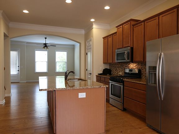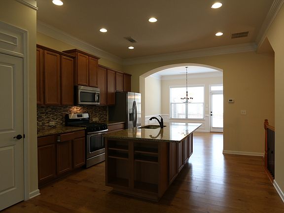 • Kitchen Features: Breakfast Bar, Cabinets Stain, Pantry, View to Family Room, Kitchen Island, Pantry Walk-In, Solid Surface Counters
