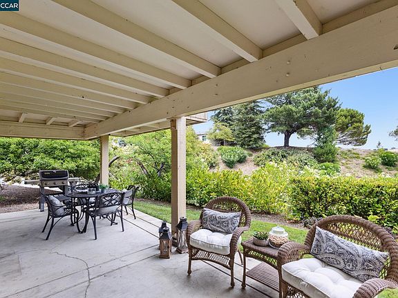 Welcome home to the highly sought after and rarely available ground level Diablo model end unit. Step inside to find a spacious living area filled with natural light and breathtaking views of the surrounding hills. The updated kitchen has an abundance of cabinetry, solid surface counters, bar style seating and opens to a formal dining room great for gatherings. From your living area you can step out the large sliding glass door to find an expansive patio with a bordering lush lawn and partial views of coveted Mount Diablo. The spacious primary suite offers custom plantation shutters, ample storage and a cozy nook perfect for enjoying a good book or a long afternoon nap. The designer bathrooms have solid surface counters, updated light fixtures and newly installed LVT flooring. Upgrades include: freshly painted interior, new carpeting, newer LVT flooring, crown molding, recessed lighting, updated light fixtures, new microwave/dishwasher, newer AC/furnace, dual pane windows.