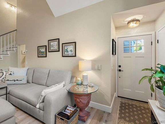 This beautifully remodeled home lives like a single story with both bedrooms and bathrooms downstairs. Upstairs is an enclosed loft great for home office, den, or optional bedroom. It's an end unit with no rear neighbors and a large 2 car garage with tons of storage. Numerous upgrades include LVP flooring through out, remodeled kitchen and bathrooms, new exterior doors and double pane windows. Great location a short distance from beaches, shopping, restaurants, parks and all that Carlsbad has to offer.