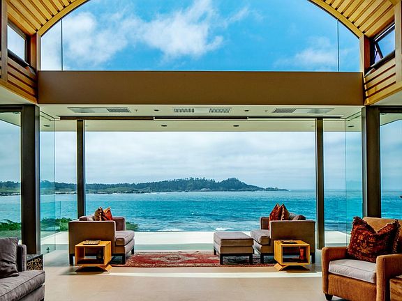 Situated minutes to Carmel along a secluded stretch of Carmel Bay and easy access to Ribera Beach, this 4 bedroom, 5.5 bath architectural masterpiece offers outstanding panoramic views of the ocean and Point Lobos. Designed by acclaimed architect Daniel Piechota, who notably apprenticed with Mickey Muenning as a contributing architect for Post Ranch Inn. The grand entrance with its soaring barrel-vaulted ceiling of Alaskan Yellow Cedar and towering walls of glass framing breathtaking views of the Point Lobos coastline make for the perfect setting for the living and dining rooms. The master suite shares the stunning view and can be transformed into a cozy private escape with sliding doors, fireplace and expansive closets and his and her bathrooms. The lower level also embraces the view with a family room, 3 guest suites and professional home theater. A gourmet kitchen, fully-equipped home gym, and elevator serving all levels complete this exceptional home.