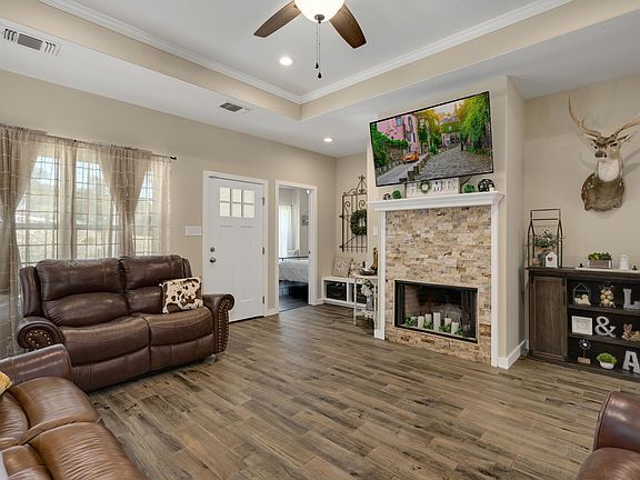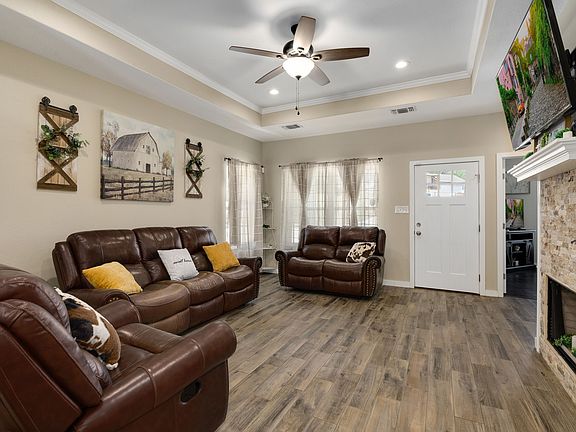 Great one story home sitting on .75 acres in the Rocky Creek Ranch community of Canyon Lake. This home offers an open kitchen and family room concept with stone fireplace, spacious primary suite with dual vanity and jetted tub, and extended outdoor deck for entertaining. Neighborhood amenities include clubhouse, park, pool, and close to public boat ramps.