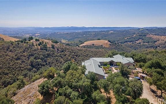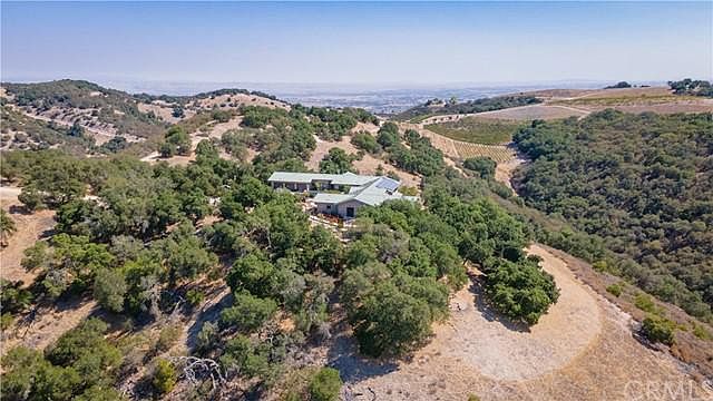 This Stunning West-Side 80 +/- acre Estate, just minutes to downtown Paso Robles, sits privately atop a hill and boasts breathtaking panoramic views from almost every window and door. Arriving at the property is like entering a different world. As you take in the beautiful views of oak trees and vineyards all the way to the coastal mountain range, the peacefulness sets in. Craftsmanship and attention to detail are showcased in this 3,434 +/- SF contemporary home. Designed for entertaining, the gourmet kitchen includes a large island, granite counters, walk in panty, upgraded stainless-steel appliances and a built in breakfast nook that captures the stunning southern views from above. The spacious Master Suite boasts a fantastic in-suite with large soaking tub, walk in shower, and huge walk in closet. The dinning, family and living rooms all open to a large deck and have fantastic views The tasteful office/bedroom features custom built-in cabinetry. Enjoy the mild weather year round from the covered wraparound deck while having your morning coffee or sipping on the luxurious wines from world famous Paso Robles Wineries. Adjoining the Main Home is the 1,200 +/- sf Guest House that was built with the same quality and craftsmanship, with one bedroom, office and open living room. The two bedrooms and one bathroom downstairs underneath the Main Home, accessed can also be easily accessed from the guest home providing many living options . The shop is ready for your toys or projects. The majestic splendor of the oak-graced paradise is also enjoyed by the wild turkeys and families of deer that can be seen while hiking or riding the property. Rare is the opportunity to own a retreat of this quality.