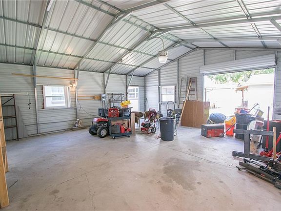 Move-in ready 3 bedroom, 2 bath home with a detached 24' x 25' garage, a she shed, a 2 car carport with brick paver driveway and a screened lanai. This home offers a formal living room, family room, spacious kitchen with eat-in dining space, huge laundry room and screened lanai with pavers. This residence is perfect for those who need lots of space for storage or a his and her workshop/crafting space. The detached garage was just built in 2015 and features a concrete slab floor, electricity, window unit a/c and a roll-up bay door. The "she shed" offers a front porch, fan and electricity. The fenced backyard provides a side entry gate and a concrete driveway that leads to the detached garage in the backyard, allowing easy access to store ATVs and lawn equipment. The interior of the home offers oak cabinetry in the kitchen, newer tile flooring in living and family rooms (2020), newer double pane windows (2015), newer water heater, updated bathroom vanities and flooring (2014), a/c handler (2012), roof (2005) and more. The attic has an additional 700+ square feet that can be converted into additional living space. Located within minutes of shopping, schools and medical facilities. Centrally located between Tampa and Orlando. Interior photos will not be available until 9/11/2020 due to the amount of boxes currently inside the home because the owners are in the process of moving out.
