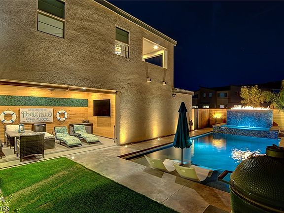 Unbelievably remarkable modern Strada home by Pardee (Now Tripointe Homes) in Inspirada! This extremely popular and multi-functional floorplan has it all with no details spared, and is even nicer than the model home itself! Enjoy almost 3,400 spacious sq.ft., 4 beds / 3.5 baths (including downstairs bedroom with en-suite bath), cozy loft, upgraded cabinets and quartz counters, Samsung Cafè appliances, custom floating staircase with modern railings, gorgeous three-panel sliding glass door to courtyard, custom family room theatre audio system with stunning tile accent wall, brand new high end vinyl plank flooring, brand new high-tech pool/spa with waterfall and built-in fire feature (installed 2022), Huge custom oversized primary shower with floating vanities and upgraded back-lit mirrors, 3-car tandem garage with epoxy finish and built in fitness gym, and the list goes on! This will not last so get it while it’s still available!