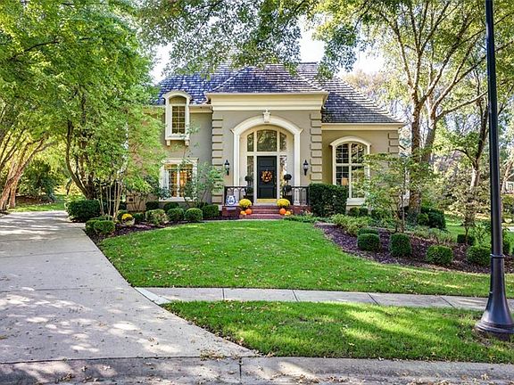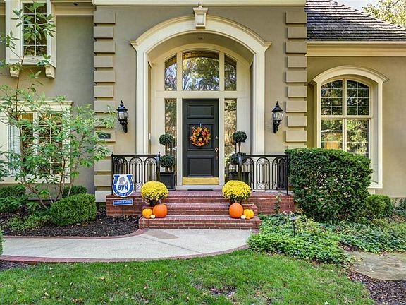 An exquisite Hallbrook gem! Nestled in a quiet cul-de-sac, this custom-built Hothaus home offers unparalleled luxury and charm. Spanning over 4,400 sqft, it features 4 bedrooms, 3.2 baths, and a 3-car garage. Be greeted by a grand staircase and a striking two-story foyer. Abundant natural light pours through gorgeous south-facing windows, highlighting rich hardwood floors. This 1.5-story layout offers true one-level living, seamlessly flowing through the sophisticated dining room, hearth room, breakfast nook, expansive living room with a double-sided fireplace, and a gallery-style hall. The updated kitchen is a culinary haven, showcasing new appliances, ample cabinetry, double ovens, pantry, large center island, cooktop, trash compactor, coffee bar, and endless views. The reimagined primary suite provides a serene escape, with spa-like features including dual vanities, a designer shower, luxurious soaking tub, skylights, and a grand walk-in closet. The main-floor office/4th bedroom impresses with floor-to-ceiling windows, custom cabinetry, and a charming library ladder. Two powder rooms and main-floor laundry round out this thoughtfully designed level. Upstairs, two large bedrooms share a full bathroom. The expansive finished lower level is an entertainer's dream, offering a large rec room, full wet bar, full bathroom, and plenty of space for hosting. A secondary stairwell from the garage leads directly to the lower level, providing easy access to ample storage and an oversized cedar closet. Outside, the serene backyard is framed by mature trees and complemented by a spacious patio, ideal for outdoor dining or peaceful lounging. This home embodies sophisticated living with meticulous attention to detail, all within the coveted Hallbrook community. With its dramatic curb appeal, refined interiors, and serene outdoor setting, this is the ultimate blend of luxury and comfort in one of Kansas City's premier neighborhoods!