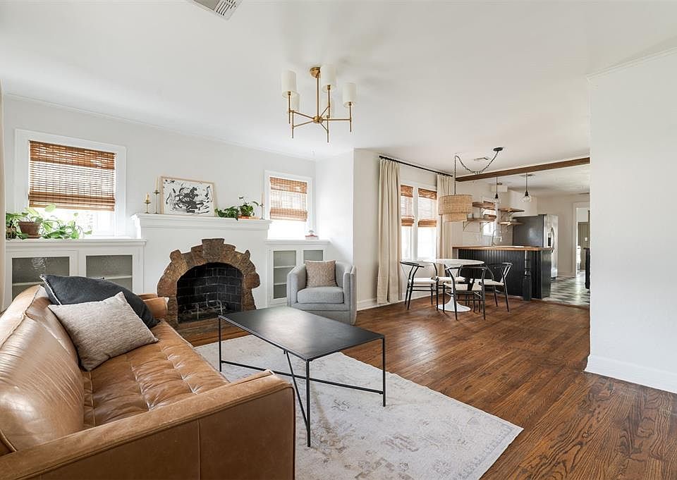 Welcome to the Bright Blonde Tudor in the charming Historic Miller Neighborhood! Situated just off Miller Blvd this delightful residence exudes timeless appeal with its classic Tudor design. The heart of the home is a warm and inviting living room featuring a gorgeous stone fireplace, flanked by built-in shelves perfect for showcasing your favorite books and decor. The open-concept layout seamlessly connects the living, dining, and kitchen areas, bathed in an abundance of natural light that enhances the welcoming atmosphere. The spacious kitchen is a chef's dream, boasting butcher block countertops, a white subway tile backsplash, and a sleek stainless steel gas range with a matching vent hood. The large peninsula island offers additional prep space and casual seating, making it ideal for both everyday meals and entertaining guests. Ample storage is provided by open shelves and numerous cabinets, ensuring that all your kitchen essentials have their place. The primary suite is a serene retreat, featuring a charming bay window, a generous closet, and an en-suite bath designed for relaxation. This private oasis includes a full tub and shower combo with white subway tile, complemented by a stylish black and white tiled floor. The third bedroom is a bright and airy space, surrounded by windows that flood it with light, and features original built-in shelving. This room is versatile and can easily serve as a guest room, home office, or playroom. The second bath is updated with a modern standing shower, fresh tile flooring, and a contemporary vanity. The property also includes a spacious 392sf basement, perfect for additional storage or as a future project space. Step outside to discover a huge backyard, complete with a storage shed and plenty of room for outdoor activities or gardening. The front yard is beautifully landscaped with flower beds, and the driveway offers convenient off-street parking. Schedule a showing today!
