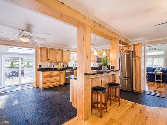 Come home to this peaceful oasis away from the hustle and bustle, as you settle in to this custom designed fully renovated home in Howard County's desirable Marriott's Ridge High School district. Sit out and relax on your covered front porch overlooking your 2.5 acres with rolling hills and spring water fed stream, or relax and listen to music with friends and family on your professionally installed 800sqft stone patio complete with High Fidelity audio system, that fills the space with wonderful sound. Patio also features a 7-person MasterSpa hot tub, a perfect way to melt your stresses away. This unique home gives you a feeling of being away from it all, while still just being a few minutes' ride from great schools, grocery stores like Harris Teeter, Giant, and Safeway, as well as fine restaurants and shopping at Turf Valley Resort. This home features a large country kitchen with solid hickory hardwood cabinets, granite counter tops and a breakfast bar, hardwood floors throughout, large living/family room with 14ft ceilings and it's own remote controlled heating and cooling system is perfect for family gatherings.The central heating and cooling system in house can be voice controlled using Alex or Google, thanks to the installation of the Ecobee digital thermostat. Large detached 2-car garage offers BONUS finished space above it, great for a movie room, a man-cave, playroom for kids, or even an additional bedroom for guests and your college age child. Invisible dog fence around the entire property. New hot water heater (2019) and water tank (2016). All the mechanicals have been recently checked as part of a regular maintenance program and are ready to provide years more of service. The septic has recently been pumped. Located centrally near the corner of MD-32, I-70, and Route 40, you can get anywhere easily and quickly.