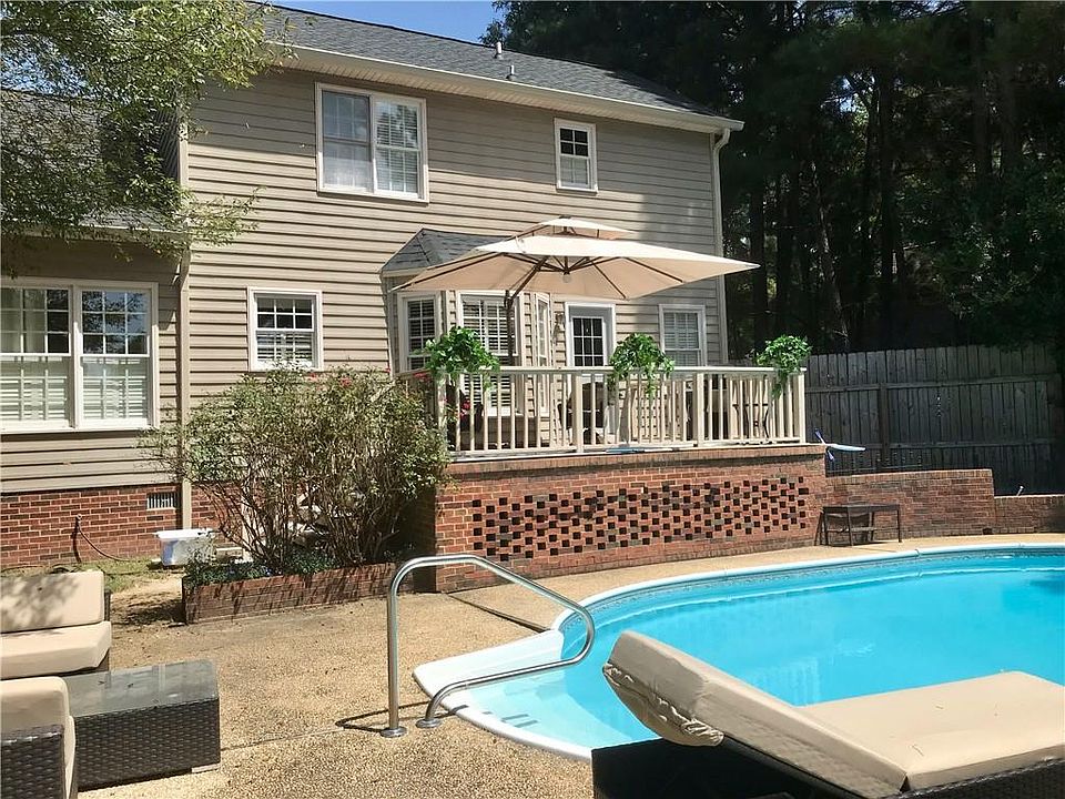 Summer's NEVER over when you have your own pool! Relax on the deck overlooking the pool in the beautifully landscaped fenced yard. Great floor plan with first floor primary bedroom, sep shower, jetted tub, dual sinks and walk in closet. Two additional bedrooms and full bath on second floor. Per seller, the garage was converted into a bonus/flex room which has a closet by previous owner. Showings begin on Thursday, Sept. 9th. Don't miss this one!