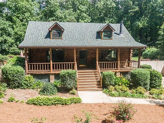 Sitting on 3.79 acres this log home will make you feel like your in the mountains. This private retreat complete with an inground pool, custom built pool bar, pool slide, extended covered back deck with high quality composite deck boards, barn, outbuilding, chicken coup, beautifully manicured landscaping with tons of flowering plants, trees and brushes. The rustic log cabin features beautiful hardwood flooring, claw foot tub, granite counters, newer roof and partially finished basement. A must see!