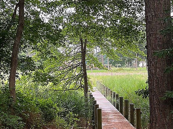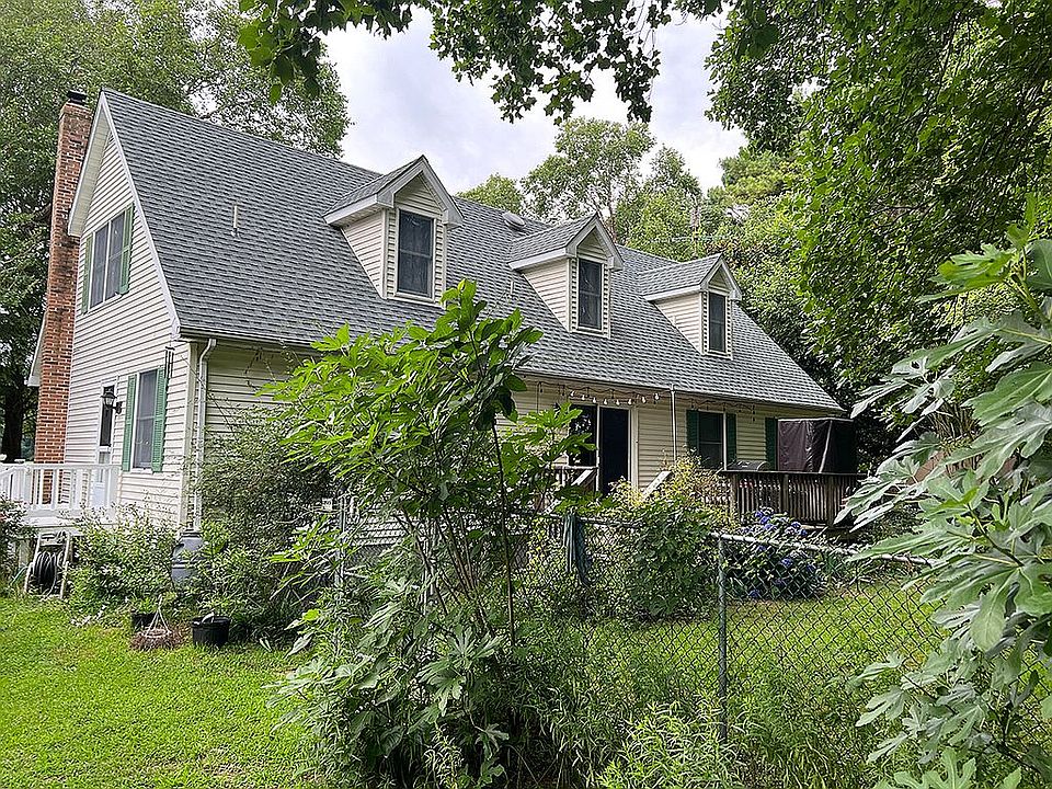 The house was built in 1991, we think. It has two large bedrooms and a bathroom upstairs; downstairs has a bedroom and den, and a full bath. The den is actually a bedroom, but the septic permit is for 3 bedrooms, so when we bought it, we were told we can't say it has 4 bedrooms. The downstairs bedroom/bathroom/den make a very nice setup for company - almost like their own suite. There is a large deck on the back of the house that overlooks the marsh. The house is oriented toward the water, so the driveway side is kind of plain. We had a new roof put on about 5 years ago.