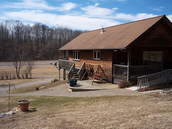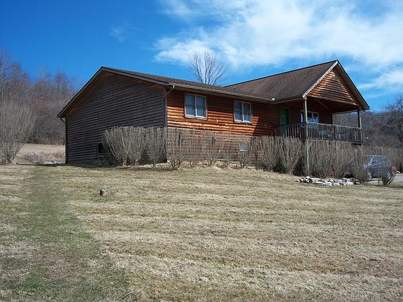 Custom owner built, cedar siding, oak and pine flooring throughout main level, pine 6 panel doors, poplar trim, ground level ramp to rear entrance, front and rear covered porches, cedar siding, 2x6 with foam walls, energy efficient - uses less then 500 gallon lp a year, 92% LP furnace with Heat Pump, open style kitchen, dining and living room with cathedral ceiling, 1976 sq ft ground level, 636 sq ft of the full size walk out basement is finished. Storage shed matches house, playground and basketball goal stays, raised garden beds stay. Two fountains are spring fed.