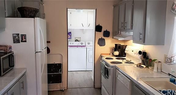 Light and bright! Situated in the highly desirable Carriage Manor, this 3 bedroom home features newer upgrades of carpet, vinyl flooring and new bathroom vanities and sinks. You'll find plenty of room in the spacious master bedroom featuring a walk-in closet and bathroom suite with soaking tub. Vaulted ceilings add to the open and bright feeling, with a dining area open to the kitchen and living room. A slider door leads out to the rear covered deck and carport. The laundry room is also adjacent to the kitchen with an exit to the rear deck. Out back you'll find a double storage area and shop, plus an additional storage shed. This community offers clubhouse and pool.