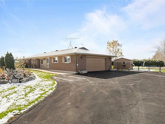 A Rare Find With This Great Country Property On Over Over 2+ Acres, 10 Minutes To Town. All Brick 1500+ Sq Ft Ranch Bungalow. 3 Good Sized Bedrooms With Ample Sized Closets, 4 Pc Bath, Laundry Room With Outside Access, Updated Light Fixtures, Door Hardware And Laminate Flooring Throughout. Oversized Double Attached Insulated Garage With Opener and man door for additional access. Long paved driveway with enough parking for the whole family. Walking inside youre greeted with an open concept living/dining area. The Kitchen features plenty Of Oak Cabinets For Storage, a new backsplash all white appliances and Ceramic Flooring with Views Of The Outdoors. Living Room With a Propane Gas Fireplace And Walkout To a Fenced yard, Private Interlocking Patio and pergola all while enjoying Panoramic Views Of The Countryside. Outside features an Inground 18` X 36` Solar Heated Pool Plus A 10` X 10 storage shed to house the equipment. It's The Perfect Space For Entertaining Family And Friends or enjoying a morning coffee.