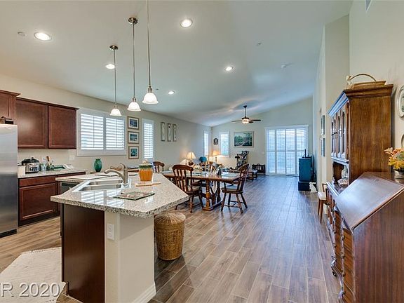 Beautiful Gated Inspirada 1 story with gorgeous floors throughout, plantation shutters, granite bullnose counter tops, 42" Cherry Wood type cabs with soft close, large walk in pantry and stainless steel appliances in Kitchen, Great room leads to large paver brick patio for chillin after work, double door entry leads into Den/home office/playroom, all bedrooms equipped with ceiling fan/light kits, custom doors throughout, quality throughout and all the excellent benefits that Inspirada offers.... Pool, Rec facilities, tennis court, parks, pet parks, Basketball courts and so on...true community...a very nice home
