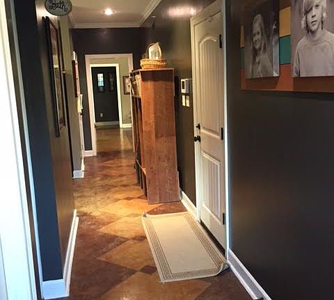 This home is stunning with it's stained concrete floors and beautiful paint colors makes you feel at ease. Downstairs it is a split bedroom plan with 2 bedrooms and 2 bathrooms plus a breakfast room, hearth room, kitchen, dining, and living room.The master bathroom is 15x16 and unbelievable. Upstairs you will find 3 more large bedrooms and a full spacious bath. If you are in need of closet space this one has it for sure. They are huge and everywhere you turn. Outside there is a covered patio that looks out onto the 1.14 acre fenced lot that is big enough for a inground pool and there's even a blackberry garden on the side yard. There are so many amenities to this home you have to see for yourself.