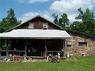 Lots of privacy is what you get in this log/stone home that sits on 18 m/l acres and has 3bed/ 1 bath with 2 of the bedrooms upstairs. It is an open floor plan with a living room, dining room, kitchen and an office off the dining room area. The kitchen has custom built pine cabinets and a large bar built out of cedar and pine. In the middle of the rooms is a large wood burning heater that has triple insulated piping that goes all the way through the 2nd floor and out the roof so it can heat the 2nd floor as well. There is also electric baseboard heaters (thermostat controlled) located in almost every room of the home. Most all of the walls through out the home are done in cedar and the winding stair case leading upstairs is made of cedar. There is a good size bathroom that has lots of storage cabinets. The home also features a covered porch on the front and side of the home as well as several flower beds. There is a 2 car carport , a large barn, a smaller storage barn, a log cabin type storage shed, a chicken coop, and a fenced in garden area. The homes water is piped from a spring but there is rural water at the end of the driveway. With a little work this place would make a great hobby farm.