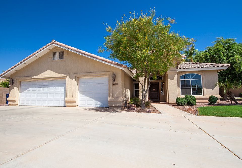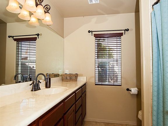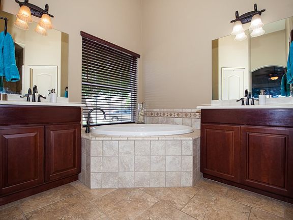 This stunning 4 bed 2 bath home has an open floor plan with tile throughout the main living area. Kitchen has granite counters and lots of cabinet space, and leads into the living room area with fireplace. French doors open up to the back covered Patio with Arbor extending out to the pool making this the perfect backyard Oasis to relax and entertain. Master bath with tiled garden tub and his/her sinks. 3 car garage and wide driveway give plenty of space for storage.