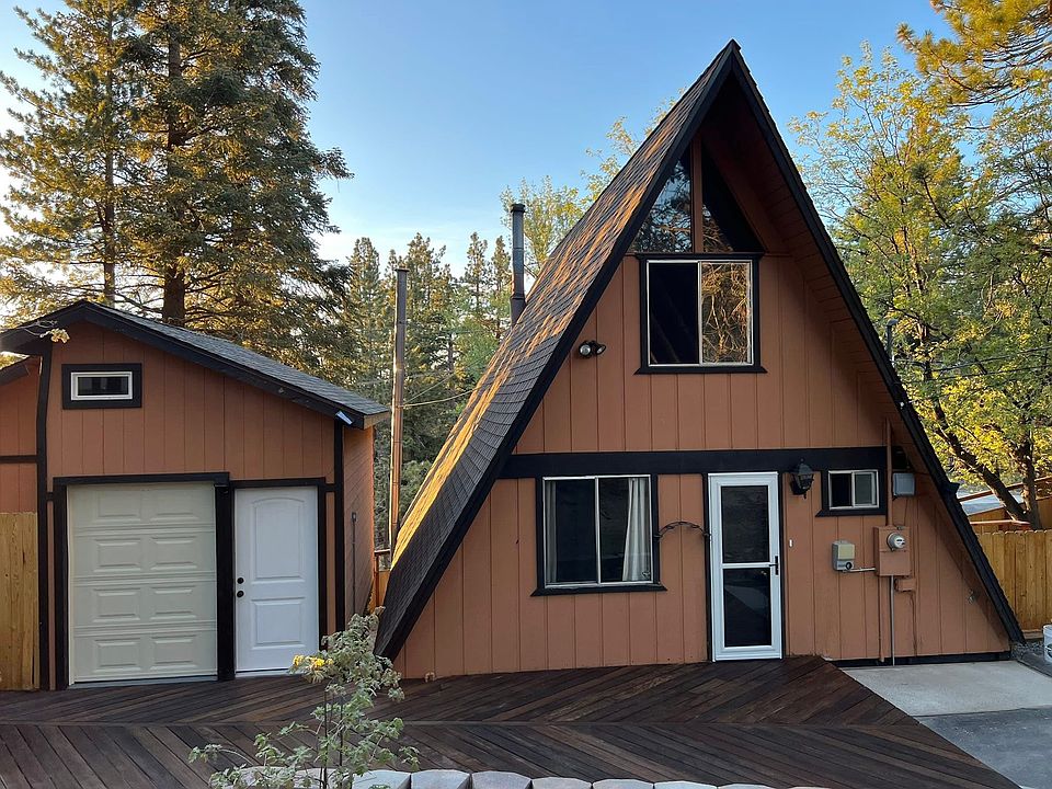 3 bed 2 bath A-frame with level entry in the desirable Nordic Tract neighborhood of Running Springs. Large fully fenced yard with access to 250+ sqft storage shed. Flat driveway with RV parking. Very nice appliances, wood burning stove, laundry room with washer and dryer, and newer flooring throughout. Pets negotiable. Currently occupied, do not disturb renters. 1 year lease. Renter pays utilities.