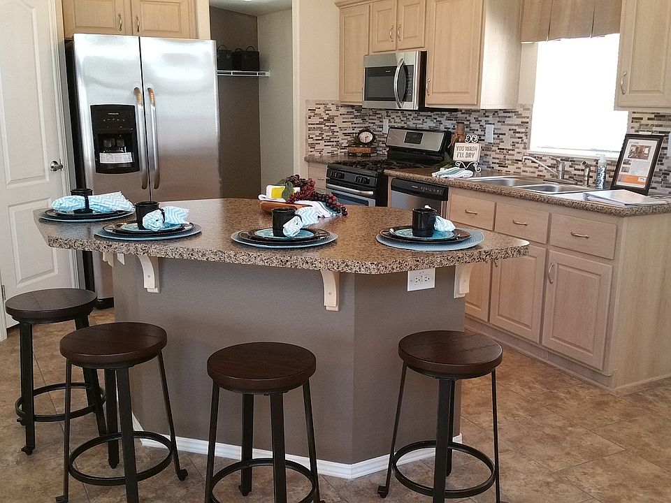BRAND NEW AND NO HOA!! Move in ready PLUS an EXTENDED 7 YEAR WARRANTY!! 2016 Model set in place in 2017 includes; All new stainless appliances including refrigerator and gas range, tiled kitchen back splash, kitchen island with breakfast bar, vaulted ceilings, transom windows, 2-tone paint, 60'' shower with glass enclosure at master bath, large master closet and added storage cabinets, Ceiling fans throughout, full window treatments, 6'' exterior walls, walk-out deck, Room for RV parking and a potential onsite RV dump connect. Also, there's a solid brick shed with a new roof and a 2nd refrigerator at the rear of the home, septic was certified, mature trees and saguaro cacti. Don't miss this rare opportunity to live in a quiet neighborhood close to shopping, eateries, & recreation.
