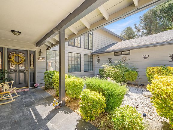 Set on just over an acre, the fully developed property features majestic oak trees, well-tended garden areas, a storage shed with a landing pad, and paved RV parking with its own private gated entrance at the base of the property. An attached two-car garage and a bonus carport off the extended driveway provide ample parking and storage options.