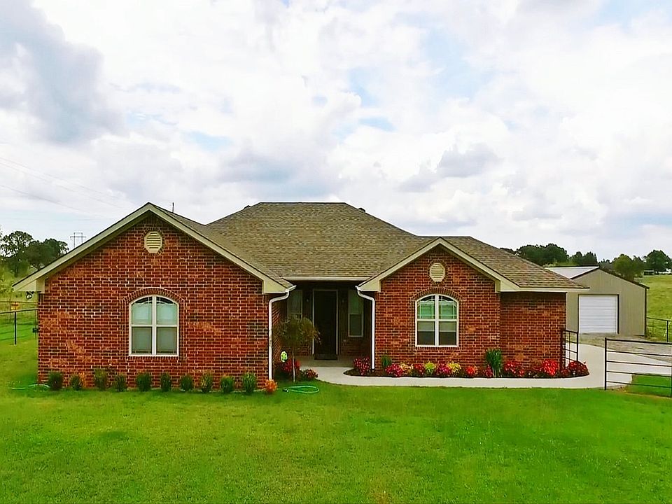 Bring The Horses! Custom beauty, 14.50 Acres! 1781 SF (per CH) home, 3 bdrms w/ walkin closets, 4th bonus rm/den/office/guest rm! Granite countertops, wide plank wood-look tile floors, cast stone FP, 24X30 shop, gated pipe fencing, pond, 2 stall loafing shed & more!