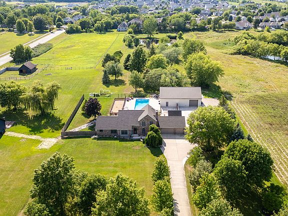Discover Your Private Paradise: A home where work, play, and leisure seamlessly blend. Why escape to vacation when you can enjoy it all right at home? This exceptional property offers a private backyard oasis with luxurious features that cater to every desire. Outdoor Retreat: Dive into the 40x20 heated saltwater pool, unwind on the expansive concrete patio, or cook up delicious meals on the custom gas grill. Cozy up around the fire-pit for relaxing evenings or let the playground area entertain kids and guests alike. Hobbyist's Dream: A 40x55 heated pole building with concrete flooring, gas, water, car lift, and 220-amp power is perfect for RVs, boats, or cars, ensuring ample space for all your hobbies and storage needs. Serene Setting: Enjoy the tranquil private pond, abundant with wildlife and offering excellent fishing opportunities. Inside, the home continues to impress: Elegant Interiors: Recently painted in a neutral palette, featuring original hardwood floors in pristine condition. The family room is bathed in natural sunlight, highlighted by vaulted ceilings. Gourmet Kitchen: The oversized kitchen boasts granite countertops and stainless steel appliances, ideal for both everyday cooking and entertaining. Not 1 but 2 Master Suites: The main level includes a master bedroom with an en-suite bathroom. The upper level master suite offers a luxurious walk-in tiled shower, large soaking tub, and a spacious walk-in closet. Entertainment Ready: The finished basement is an entertainer's haven with a sauna, theater room, private storm-proof hideaway, and additional bonus rooms for versatile use. Recent upgrades include a new refrigerator (2023), stove (2022), pool pump and liner (2023), carpet (2022) and new electric installed to the shed (2023). Don't miss the opportunity to own this remarkable property. Where luxury, comfort, and recreational space come together in one perfect package!