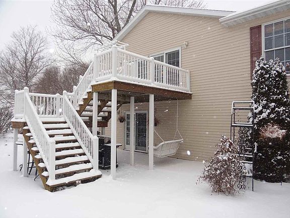 Here is the Iowa County ACREAGE you've been looking for! Immaculate ranch home located off a hard surface road, 5 miles off I-80. This well-maintained property features a large kitchen island overlooking the spacious open living area & lovely hardwood floors. Enjoy great views from every window of the beautiful grounds including extensive landscaping on 4.4 acres. Take in the countryside on the large deck, lighted patio, or sun room w/ sky lights. Main floor master bedroom & laundry.