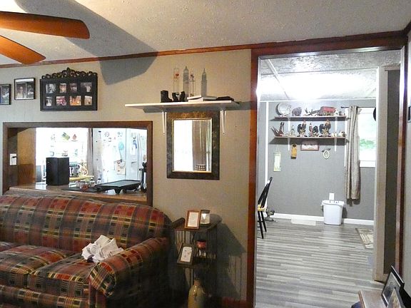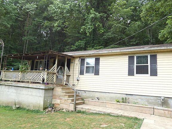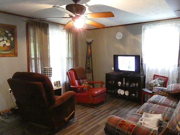 Country Living!!! This 975 Sq ft home sits on 3.75 acres, cute 2 bedroom 1 bath extra room w/closet, all appliances stay, laminate flooring thru out, this property has chain link fenced yard, 20x20 metal carport, block workshop, block bldg, great for storm shelter or canning goods from the garden plot, Approx 24x24 building block foundation, all buildings are wired for electric, 3 outside water spigots from the cave on property w/1100 gallon holding tank, city water is ran to house, Propane tank for cooking and backup ventless fireplace, hvac refurbished in 2023, come sit on your covered front porch and you can see Renegade Mountain