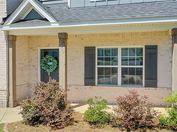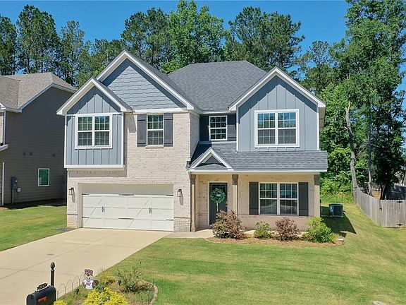 Impeccably maintained and thoughtfully designed, this 4-bedroom, 2.5-bathroom home offers modern living with timeless charm. The main level features rich hardwood floors, a coffered ceiling in the formal dining room, and a spacious kitchen ideal for entertaining. Step outside to a private, wooded backdrop and enjoy the covered game day porch, complete with a cozy wood-burning fireplace. The oversized primary suite is filled with natural light and offers a luxurious ensuite with a glass-enclosed shower, soaking tub, dual vanities, and a generous walk-in closet. Secondary bedrooms are equally spacious, boasting high ceilings and plenty of storage. Additional highlights include a convenient drop zone off the two-car garage, a gas fireplace in the great room, and a main-level laundry room. Energy-efficient features include an irrigation system, spray foam insulation in the attic, and a tankless water heater. Plus, enjoy the benefit of a large, flat side yard perfect for play or relaxation.