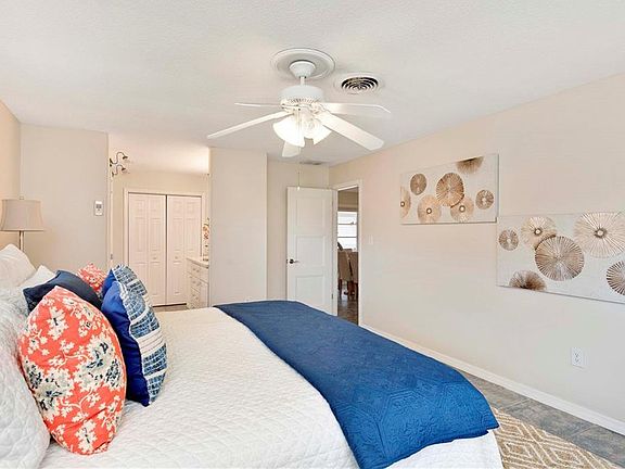 STOP THE CAR! Move in ready 4/2 split plan with pool on a 1/3 acre waterfront lot is perfect for your New Year Day gathering! Well maintained home with large bedrooms, extra storage, and two living areas. The kitchen is a chefâs dream with granite counters, pull outs, double oven, stainless GE Profile appliances and an island on wheels! The kitchen opens to the family room and has a pass-through window to the oversized lanai. The screened lanai includes an extended covered deck and pool overlooking fenced backyard and Lake Kewannee! With its own floating dock, all day can be spent swimming, fishing, paddle board or kayaking then relax pool side! The 2 custom shedâs, one of which has electricity, store water toys and lawn equipment. The sprinkler system runs off a lake pump. From the pool, glass French doors open to either the family or the dining room. The ownerâs retreat is private with an updated bath having granite, dual sinks, and extra storage. The additional bath is also updated with a whirlpool tub, dual sinks, granite and pull outs in the cabinetry. Hot water heater and dryer are natural gas and garage is oversized with a workspace area! Home has insulated windows and seamless gutters. The pool screen was added in 2016 along with an updated pool deck. In 2015, the 2 custom sheds were added. In 2018, a floating dock was added. Privacy fence, natural gas, fresh interior paint and more! Fabulous location walking distance to Kewannee Park, bike trails and minutes to shopping.