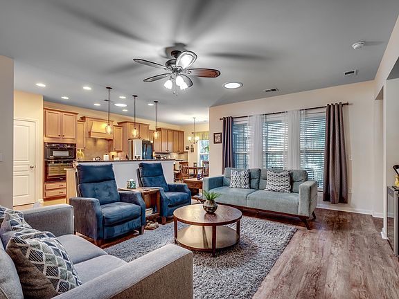 Single Level 3 Bedroom 2 Bath with a 3 car garage! (tandem garage-2 front & back on left side and 1 on right side). Beautiful Open Floor Plan features a large family room! Gourmet Kitchen boasts 42" Birch cabinets, Granite counter tops, Stainless Steel Appliances, Gas cook top, Under cabinet lighting, and Built in Desk. Master Suite has a ceiling fan and three large windows overlooking the backyard. Master Bath offers double sinks, a garden tub, separate shower, and large walk-in closet. The other two bedrooms are spacious! Sip your favorite beverage in your Screened Porch over looking your fenced back yard and wooded area behind the house. HVAC and Heat pump Replaced August 2023! This neighborhood has Resort Style Amenities which include: Two pools, Lazy River, Fitness Gym, Club house, Pickleball court, Dog Park, Playground, Splash zone with dump bucket, Bocce court, basketball court, tennis court, hot tub, lake access with a concrete boat ramp for non-motorized boats. Close to Hospitals, fine restaurants, Tanger Outlets and other shops, airport, and 12 min to the Beach!! Don't miss this Beautiful Home!! Schedule a showing Today!