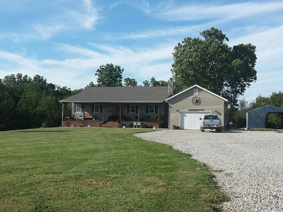 Must see to appreciate. Call 918-346-9496 for a showing Description: 3 -4 Bedroom, 2 1/2 bath home, full walk out basement and attached garage. Granite counters and oak cabinets. Stainless steel appliances all stay including over the stove microwave. 2x6 walls and energy efficient all electric. Upstairs has rock fireplace with wood insert. Basement has pellet stove. 2 dog kennels that will house 7 dogs with concrete floors. Large detached metal building. 56 acres of mostly timber with some openings that have been used for food plots. A pond and small creek also on the property. Sits on a paved road only 5 miles East of town. Nice and quiet country setting. Additional pictures available upon request. Reasonable offers accepted. call or text. Please remember that the price includes 56 acres of land and outbuildings so the price per sq foot reflected is not accurate as it does not factor that in.