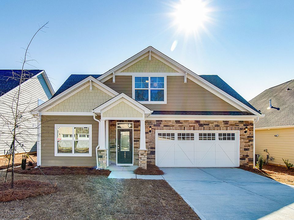 Welcome home to the three-bedroom, three-bathroom Fullerton. Enter to an impressive foyer with archways that lead to a very open great room, kitchen, and eat-in area, all with soaring 12' ceilings. The great room is anchored by a gas-log fireplace. The gourmet kitchen has upgraded appliances including a wall oven/microwave combo and a huge island. A large breakfast area is next to the kitchen. The primary bedroom suite is located on the main level and features a boxed ceiling with crown molding. The primary bath is to die for and offers dual sink vanities, a tiled shower, and a large walk-in closet. At the front of the home is a guest suite attached to a full bath. A laundry room with a laundry sink is also located on the main level. Upstairs features one bedroom with a full bath and a walk-in floored storage area. The covered rear porch is off the great room and overlooks the fenced backyard and includes a gas log fireplace with a stone hearth. Low-maintenance living is an added bonus. Front yard maintenance and yearly pressure washing are all included in this wonderful Lake Murray access community. Amenities include a community boat ramp with a day dock and two pool areas with cabanas. Call for more information on the Fullerton, today!