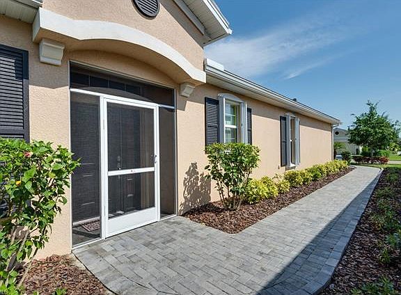 Experience this Beautiful Sandoval home set in a quiet neighborhood and surrounded by lush tropical landscaping. This home has lots of extras; Den in addition to 3 bedrooms, kitchen has upgraded 42" cabinets with granite counters and stainless steel appliances and pantry, oversize laundry room with tub, tile is laid on the diagonal, tray ceilings, HUGE master closet, tile roof, screen front entryway to enjoy the cool evening breeze and an extended lanai that looks out over beautiful landscaping. New accordion storm shutters have just been installed. Enjoy an active lifestyle with all that the exclusive Sandoval community has to offer, from a resort scale lagoon pool, tiki huts, water slide, clubhouse, exercise room, tennis, basketball, volleyball, children's play area, 2 miles of walking paths, multiple lakes, fishing pier, dog parks, many weekly activities, and all this in walking distance to Surfside shops and restaurants.