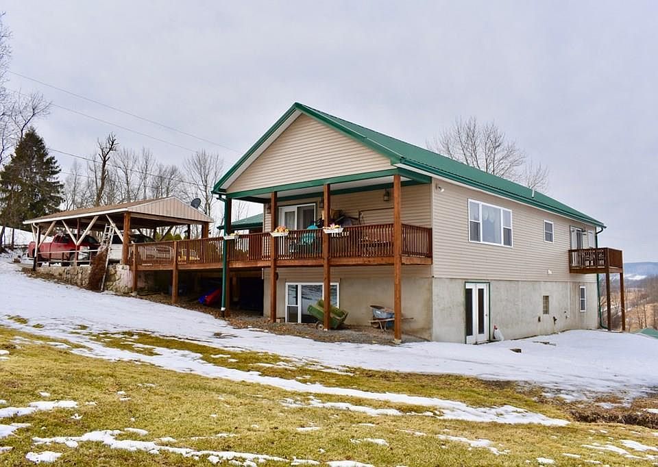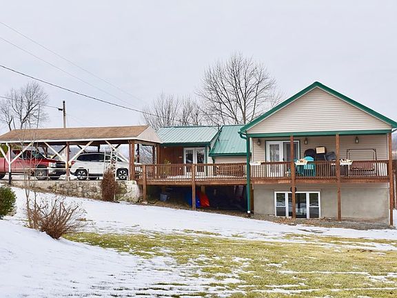 Gorgeous fully updated 3 bed, 3 bath home with lots of space, beautiful views, & more. 1st floor feels openl with cathedral ceilings, wood work and a kitchen/dining room/living room that flow together with enough space to serve 40 guests. The kitchen includes a serving island and breakfast bar finished with stone trim. Enjoy the wet bar in the large family room, the spacious masterbedroom (with private deck) and masterbath with jacuzzi tub! Outside is an attached carport, detached heated garage/workshop a single horse stall & fenced pasture. Don't forget the small pond, stream, and large deck.