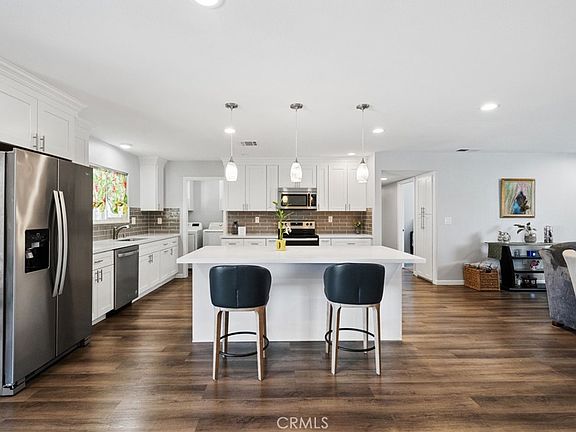 55+ YOUNG LIVING AT ITS BEST in this BEAUTIFULLY REMODELED 3 bedroom, 2 bath home with ~1457 sq ft. + 1 CAR ATTACHED GARAGE *TURNKEY * SOLAR to SAVE YOU $$$ *NEWER ROOF *NEWER DUAL-PANED WINDOWS *NEWER EXTERIOR PAINT * NEWER STAINLESS STEEL APPLIANCES *CONTEMPORARY LUXURY VINYL PLANK FLOORING(in a GREYISH-BROWN TONE) & NEUTRAL PAINT THROUGHOUT. You will not be disappointed from the moment you walk in the front door with an OPEN FLOORPLAN & TONS OF NATURAL LIGHT, this home has a spacious living room and kitchen eat-in area. The NEWLY REMODELED KITCHEN has CRISP WHITE CABINETS, QUARTZ countertops, PENDANT LIGHTING, SOFT CLOSE HINGE CABINETS & DRAWERS, newer STAINLESS STEEL APPLIANCES, & a HUGE EAT-IN ISLAND-great for either entertaining or cooking & baking. And you'll just LOVE the CONTEMPORARY grey SUBWAY TILE BACKSPLASH! Right off the kitchen, you'll find a nice-sized LAUNDRY ROOM with cabinets for storage. Down the hall, you'll find 2 secondary bedrooms both with cozy carpet, ceiling fans and mirrored wardrobe closets. The secondary bath has been recently updated and includes a tub-shower combo. The primary bedroom at the end of the hall has a large window looking out into your private backyard, and a ceiling fan and the attached bath has an UPDATED VANITY with an ENORMOUS & BEAUTIFLLY REMODELED WALK-IN SHOWER (w/wheelchair accessibility). Out back, you'll enjoy a lot of privacy and space, a very nice-sized patio w/aluma-wood patio cover, a storage shed, and an attached room currently being used as a "painting/craft" space- a great potential "workshop" of any kind! The ATTACHED 1 CAR GARAGE allows you a dedicated space for a car and/or extra storage. This Sun City Blvd. home is located in the Sun City Civic Association where you can enjoy 2 community pools, a spa, a private golf course, a fitness center, shuffleboard courts, horseshoe pits, lawn bowling, pickleball & all sorts of clubs and activities to keep you as busy and as social as you want to be! With VERY LOW TAXES & an HOA of ONLY $400/ANNUALLY, this is a home you do not want to miss!