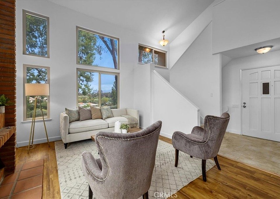 Welcome home to 26471 Zoraida, a wonderful end unit tucked into the hills of the highly sought after La Mancha community of Mission Viejo. This home is nestled into a quiet cul-de-sac and provides great views of the area with lots of greenery. The main level invites you into an open floor plan living room with high ceilings, flooded with natural light, and dining with an outdoor balcony deck. The updated kitchen has a large breakfast nook area as well as access to the attached two-car garage. Upstairs features the primary suite, with high ceilings and large walk-in closet, and bedrooms two and three. Downstairs boasts a bright and open family room, with access to the back patio and green belt - perfect for the kids and dogs! Downstairs also has a spacious fourth bedroom, ready to use as a home office, gym, or game room, and a third bathroom. Other features include brand new carpet, new custom paint, central AC/heat, recessed lighting, dual pane windows and slider doors, and an individual laundry room. Centrally located to outstanding Mission Viejo schools, parks, golf, local dining and shopping, and hospitals. Community includes pool access, and this home is also eligible for a Lake Mission Viejo membership!