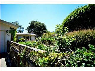 In Carmel's Mission Fields neighborhood is this single level charmer. The master suite is fabulous, over 400 sf with walk-in closet and a two-way gas log fireplace. Enjoy from the room and the large jetted bathtub, separate shower too. 2nd bedroom has built-in desk system. Hardwood floors under most of the carpeting. Decking off the back with southern exposure. Roses and colorful blooms galore.