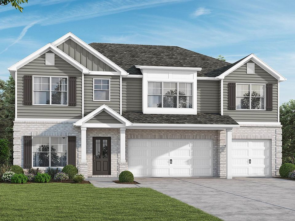 The Ramsey II. Gather around the granite island in the kitchen to share appetizers & stories about your day. The dining room with its coffered ceiling opens conveniently to the kitchen & breakfast area which seamlessly flow into the family room. Step outside the family room to the covered porch & put some food on the grill. Retreat upstairs to your primary suite with trey ceilings & sitting area. Enjoy a soak in the tub in your spacious bathroom. A huge loft, 3 more generously sized bedrooms with trey ceilings & laundry room on this level. 1 bedroom & full bath on the first floor. Covered Porch & 3car garage. Photos are of similar home, options may not be included price.