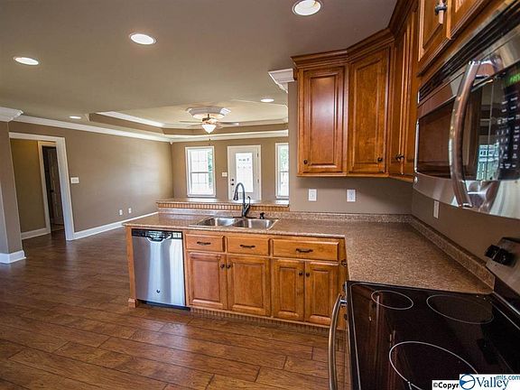 Open living space, extensive crown molding, recessed lights, ceiling fans, SS appliances, trey & vaulted ceilings, LR & kitchen has plank wood flooring, tile in wet areas, extra large master bathroom with double vanity and huge walk-in closet, 2 car attached garage with front entry, concrete driveway. Add'l pet deposit will be required and will be non refundable!
