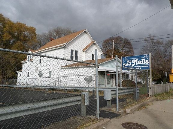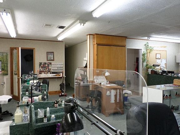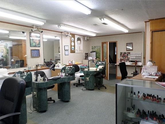 Well established business since 1994 in a great location! All About Nails and Tanning Salon. 2 bedroom apartment on the 2nd level. You can live where you work. Property has lots of updates: roof, siding, furnaces, hot water tanks and some windows. All utilities are separate. All appliances stay. 8 parking spots. 2 pedicure chairs, tanning booth and facial equipment are negotiable.