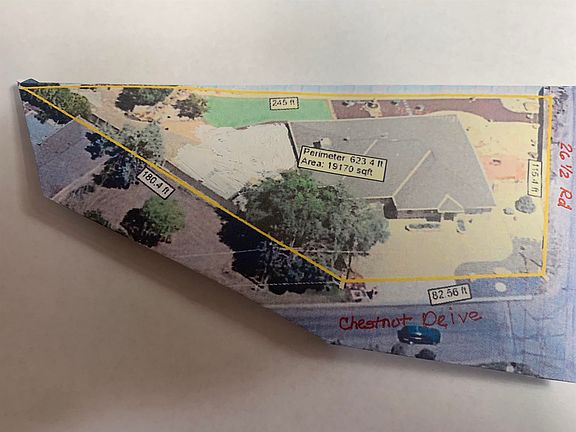 Located on the corner of Chestnut Drive and 7th St (26 1/2 Rd) this spacious 3 bedroom 2 1/2 bath (plus shower in the garage) home has great access only 1-1/2 miles from St Mary's Hospital, grocery store, Horizons Dr restaurants close by, oversized 3 car garage with built in storage area, lots of concrete parking area, RV parking and low maintenance xeriscaped landscaping includes artificial grass so no mower needed. Lots of custom cabinetry, tile and carpeted floors, great bonus/enclosed patio room off the back of the home. Covered Back porch, spacious patio areas, 6' privacy fence. Split bedroom design. Solid wood interior doors, HURD brand casement Windows, includes all kitchen appliances, upgraded roofing, hot water heating system-In-Floor Hot water heat, refrigerated air conditioning! Ready to move-in. Appraisal Completed, Quck Closing Available!